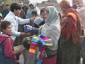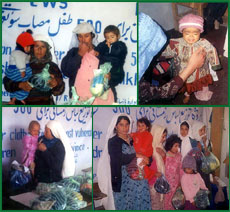 Distribution From Summer 2003 Campaign for 5,000 Children In Summer 2003, afghans for Afghans conducted a campaign to generate 5,000 wool hats, mittens, socks, and sweaters for children ages 1-5 years. Shipped overseas by World Concern, our gifts were distributed in December in time for the winter weather. |