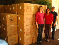 ![]() In San Francisco, Emily and Ann sending off our wool gifts. ![]() At the American Friends Service Committee, Pam, Emily, and Ty finish the packing. |