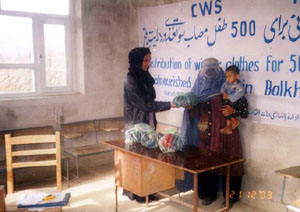 Church World Service partners with Afghan organizations in Kabul, Bamiyan (where the giant Buddhas were destroyed by Taliban in Summer 2001), and Markaz-e-Oslah-Tarbeet. Our blankets and garments were distributed at rehabilitation and health centers. These programs treat kids traumatized by years of war and poverty. Many have lost loved
