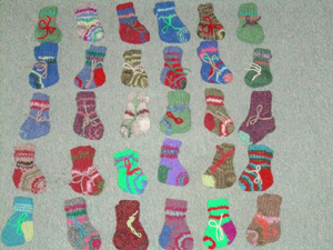 ![]() Newborn socks galore knit by Betsy Tucker, Charlottesville, VA